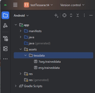 フォルダassets内にフォルダtessdataを作って,その中にeng.traineddataと7seg.traineddataを埋め込みます。